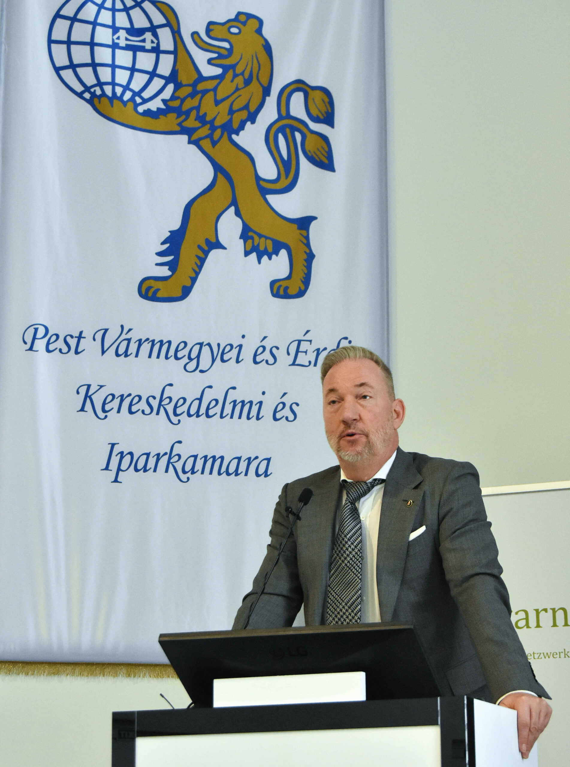 Arne Gobert a DWC elnöke előadásában sorra vette azokat a területeket, amelyek a német-magyar gazdasági együttműködés középpontjában állnak. A két ország export-import áruforgalmának kiemelkedően nagy területi a járműipar, a gépek-villamossági berendezések, a vegyipari termékek, a nem nemesfémből készült áruk, a műanyag és gumiipar és az optikai orvosi műszerek. A szolgáltatási szektor is folyamatosan bővül, és egyre inkább meghatározóvá válik. A jövő területei között pedig a digitalizációt, a mesterséges intelligenciát, az innovációt és a kutatásfejlesztést emelte ki, mint a jövő együttműködésének legnagyobb lehetőséget magában rejtő területeit.